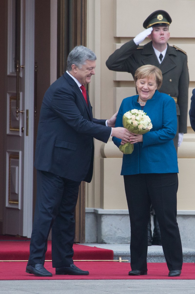 Президент Украины Петр Порошенко подарил очень скромный букет канцлеру Германии Ангеле Меркель, когда она 1 ноября прибыла в Киев.