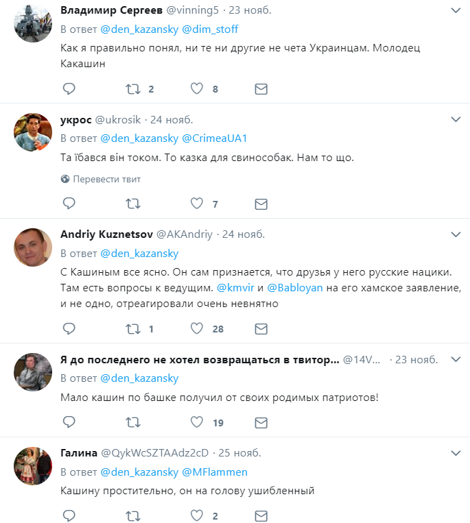 В продолжение своей мысли Кашин решил высказаться и про украинцев, небрежность и оскорбительность которого разозлила социальные сети.