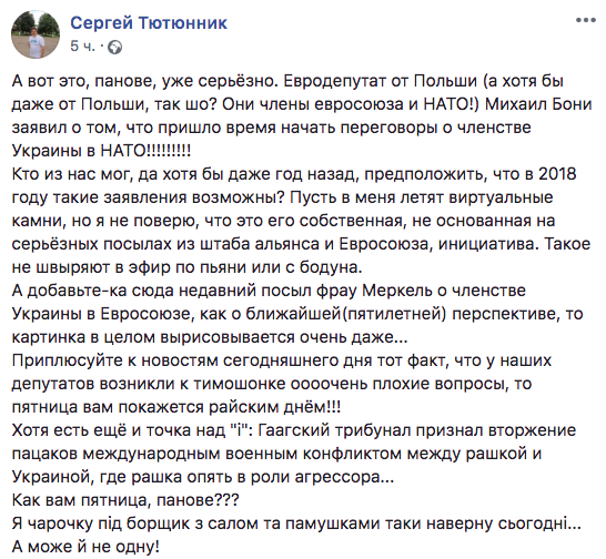 Внимание на важное заявление парламентария обратил в Facebook блогер Сергей Тютюнник, передает "Диалог.UA".