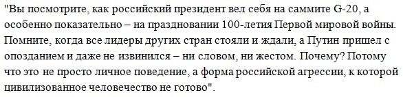 Эксперт напомнил поведение Путина на саммите в Аргентине и на торжествах по случаю 100-летия Первой мировой войны, где он продемонстрировал форму агрессии страны-оккупанта.