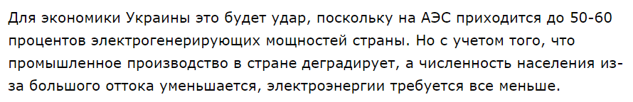 "Отключать украинские АЭС придется, потому что урана нет", - заявляет он в комментарии изданию "Московский Комсомолец".