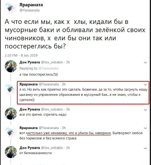 Также сторонники "русского мира" мечтают взять пример с Украины, где активисты бросали в мусорные баки чиновников-коррупционеров. Более того, призывают расстрелять и ликвидировать главарей боевиков.
