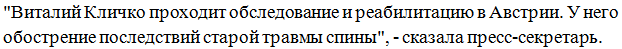 Стоит отметить, что в субботу, 26 января, Кличко доставили из города Давос (Швейцария), в котором подошел к концу известный экономический форум, в клинику Австрии для проведения обследования.