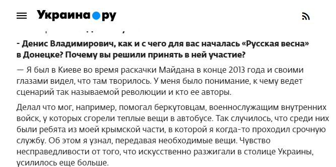 Главный сепаратист и боевик "ДНР" Денис Пушилин рассказал в интервью, что был участником Евромайдана в 2013 году в столице Украины.