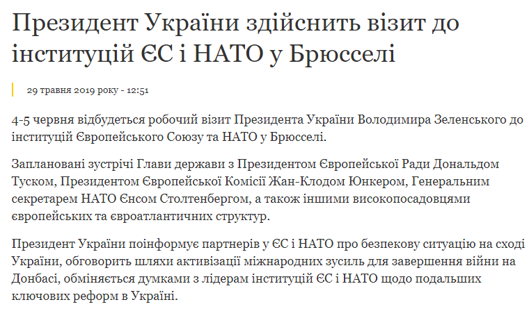 Первая зарубежная поездка нового главы Украины произойдет уже 4 июня. Он отправится в Брюссель.