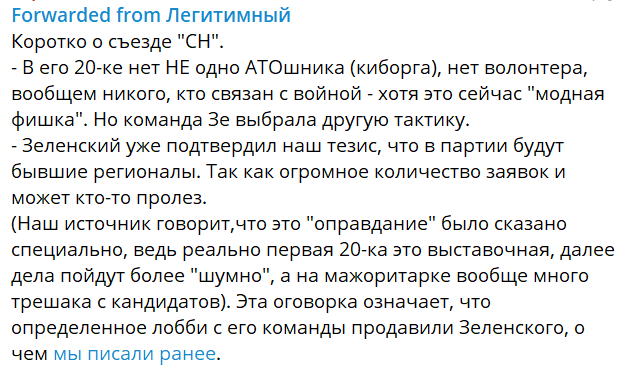 При этом политический телеграмм-канал "Легитимный" отметил полное отсутствие связанных с войной на Донбассе людей: волонтеров и ветеранов.