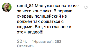 "Мне уже по* на то, из-за чего конфликт. В первую очередь полицейский не должен так общаться с людьми. Вот, что главное в этом видео", - пишут комментаторы.