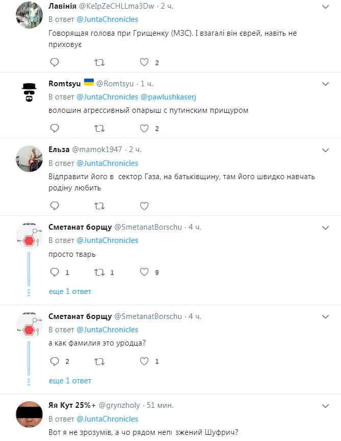 "Волошин - агрессивный опарыш с путинским прищуром";