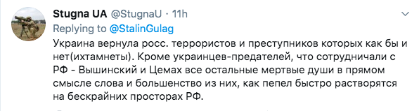 Пост Сталингулага в Twitter об обмене вызвал бурную реакцию у россиян, передает "Диалог.UA".