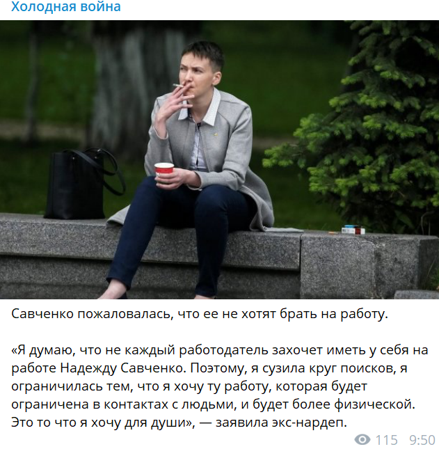 Она отметила, что не каждый хочет видеть на работе Савченко, поэтому ей пришлось сузить свой круг поисков.