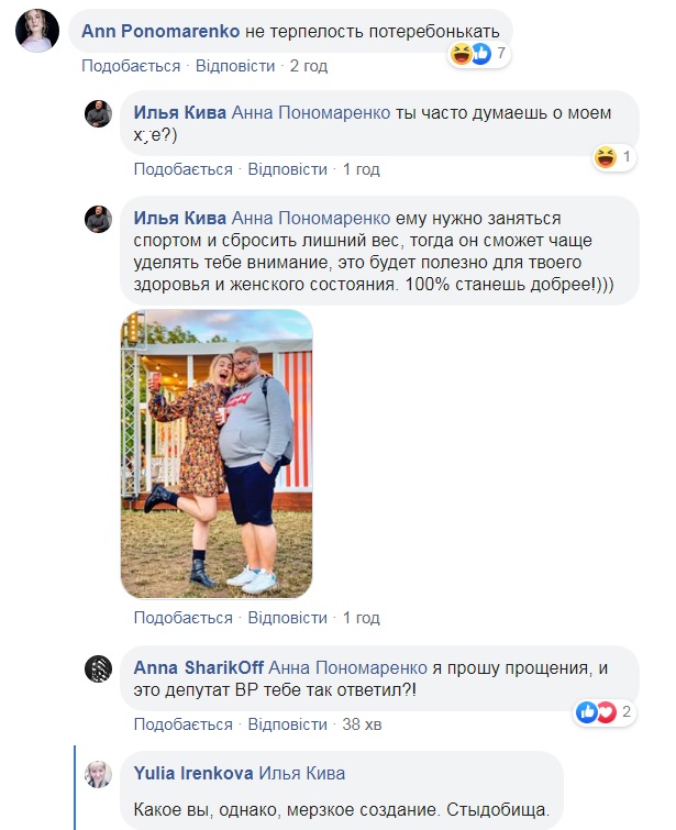 Отреагировал на свою фотографию и сам Кива, отличившись в комментариях. Народный депутат отреагировал на фразу одной из пользовательниц, шокировав своим поведением.