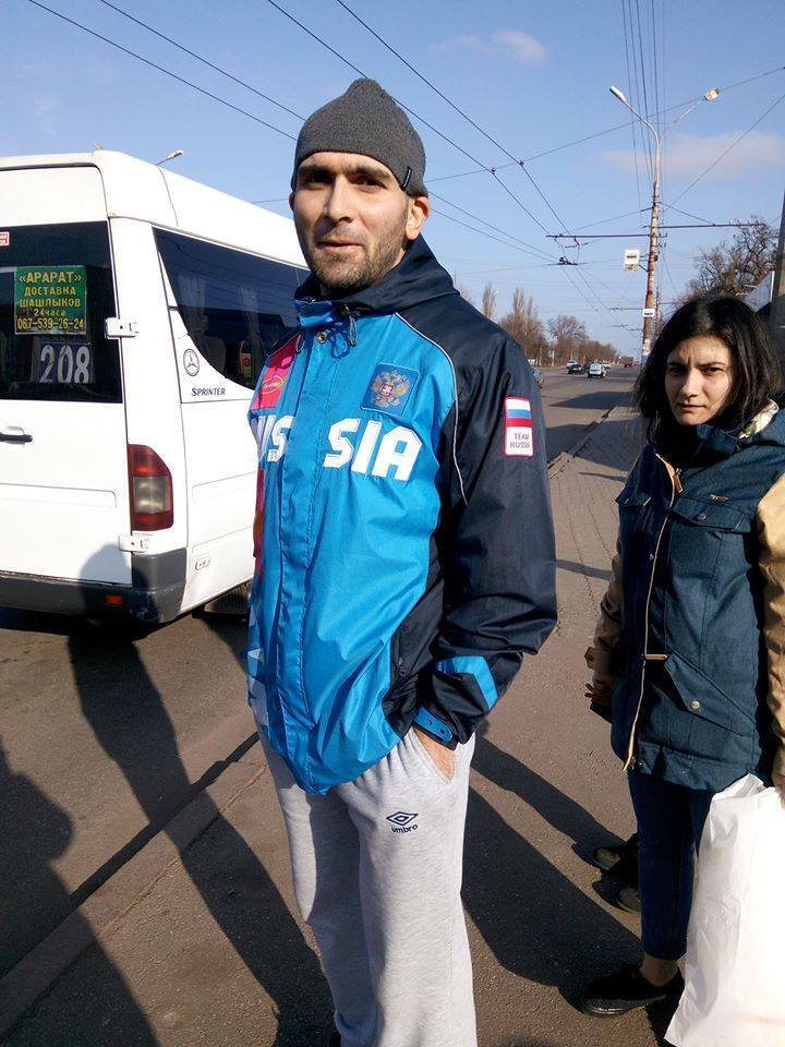 Поклонник "русского мира", расхаживающий в Кривом Роге Днепропетровской области с государственной символикой страны-агрессора Российской Федерации, публично оскорбил женщину, которая разговаривала на украинском языке.
