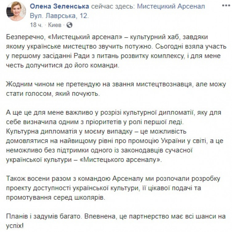 Пользователи смогли выяснить, что пост, касающийся работы "Мистецького арсенала", где жена президента сменила в Совете по вопросам его развития жену пятого главы государства Марину, восстановлен не был. Причины до сих пор остаются неизвестными.