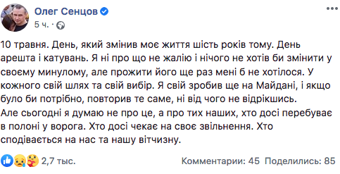 Олег Сенцов: "10 мая. День, который изменил всю мою жизнь"