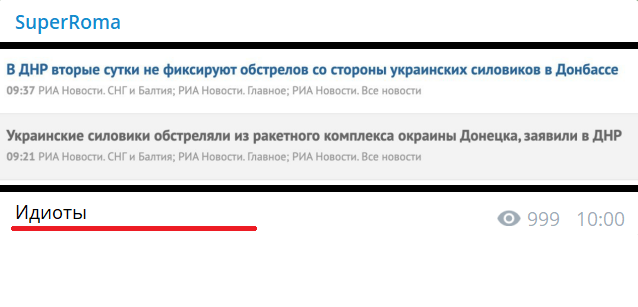 Корреспондент информационного агентства "Униан" в Москве в своем Телеграм-канале показал два последовательных сообщения кремлевского информационного агентства "РИА Новости": по его мнению, именно так работают российские пропагандисты в отношении Украины и Донбасса.
