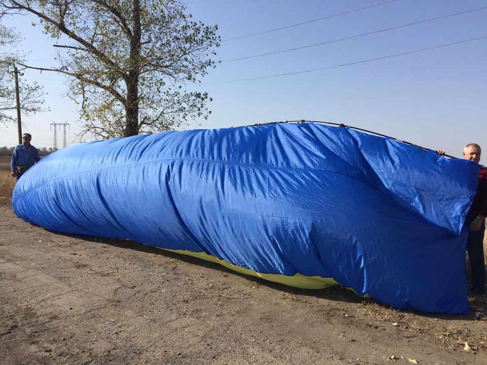 Патриоты подняли в небо на воздушных шарах Государственный флаг Украины и разбросали листовки, попавшие точно в цель - на позиции незаконных вооруженных бандформирований "ДНР".