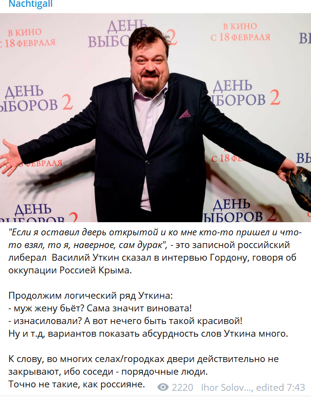 Известный российский журналист Уткин заявил, что Украина сама виновата в том, что Россия оккупировала Крым.