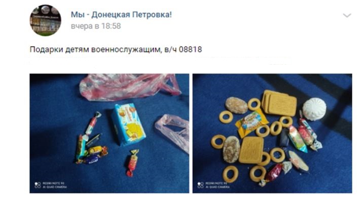 Семь штук конфет, пять штук печенья, одиннадцать бубликов, два пряника и одна зефирка. Такие новогодние подарки получили дети "военнослужащих" одной из "воинских частей" в так называемой "ДНР", сообщает Диалог.UA.