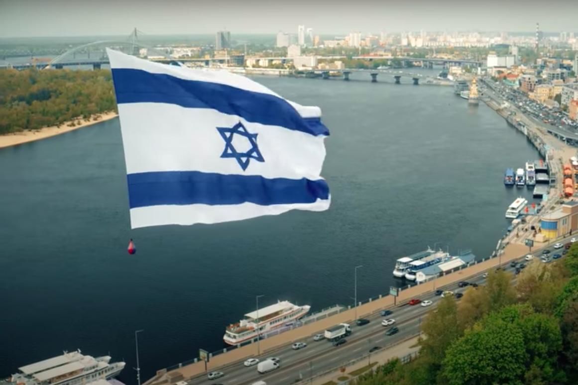 В пятницу, 14 марта, над Киевом пролетел 40-метровый флаг Израиля. Так украинцы поздравили дружественную страну в День Независимости и поддержали в сложное время.