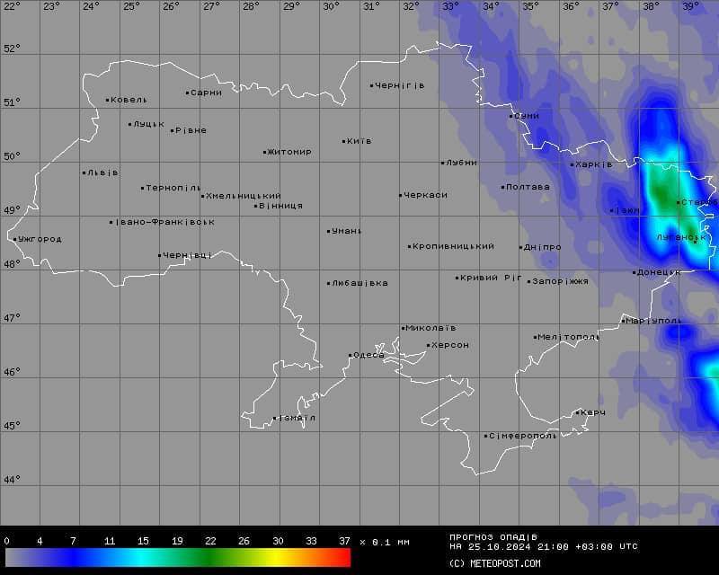 Укргидрометцентр публикует карту с прогнозом погоды по областям на пятницу на своем сайте.