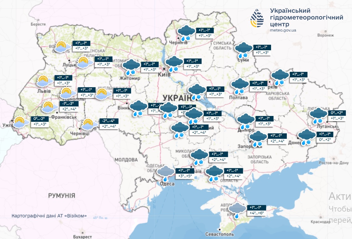 Украина продолжает удивлять нетипичной для января погодой: на пятницу, 17 января, синоптики прогнозируют сочетание мягкого тепла и мокрого снега.