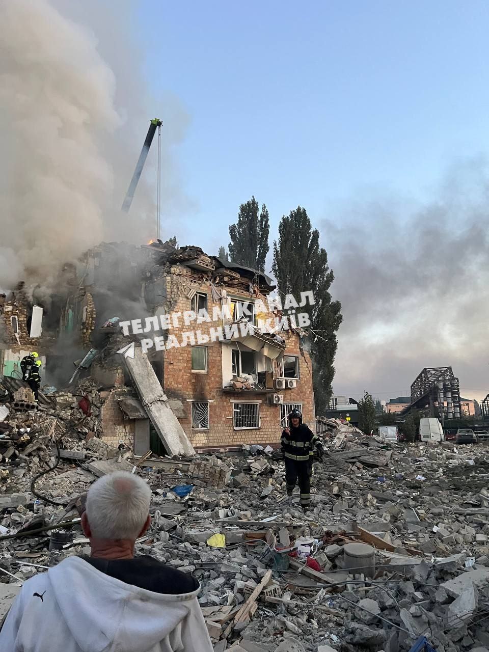 Именно в Дарницком районе прямое попадание вражеского объекта разрушило часть пятиэтажного дома.