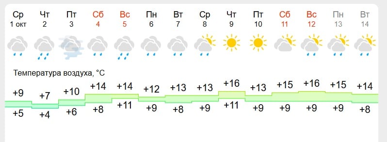 В столице днём всего +8 °C и дождь. Синоптики советуют утеплиться почти по-зимнему и обязательно брать зонт. Но это ненадолго: уже после 5 октября температура начнет медленно повышаться.