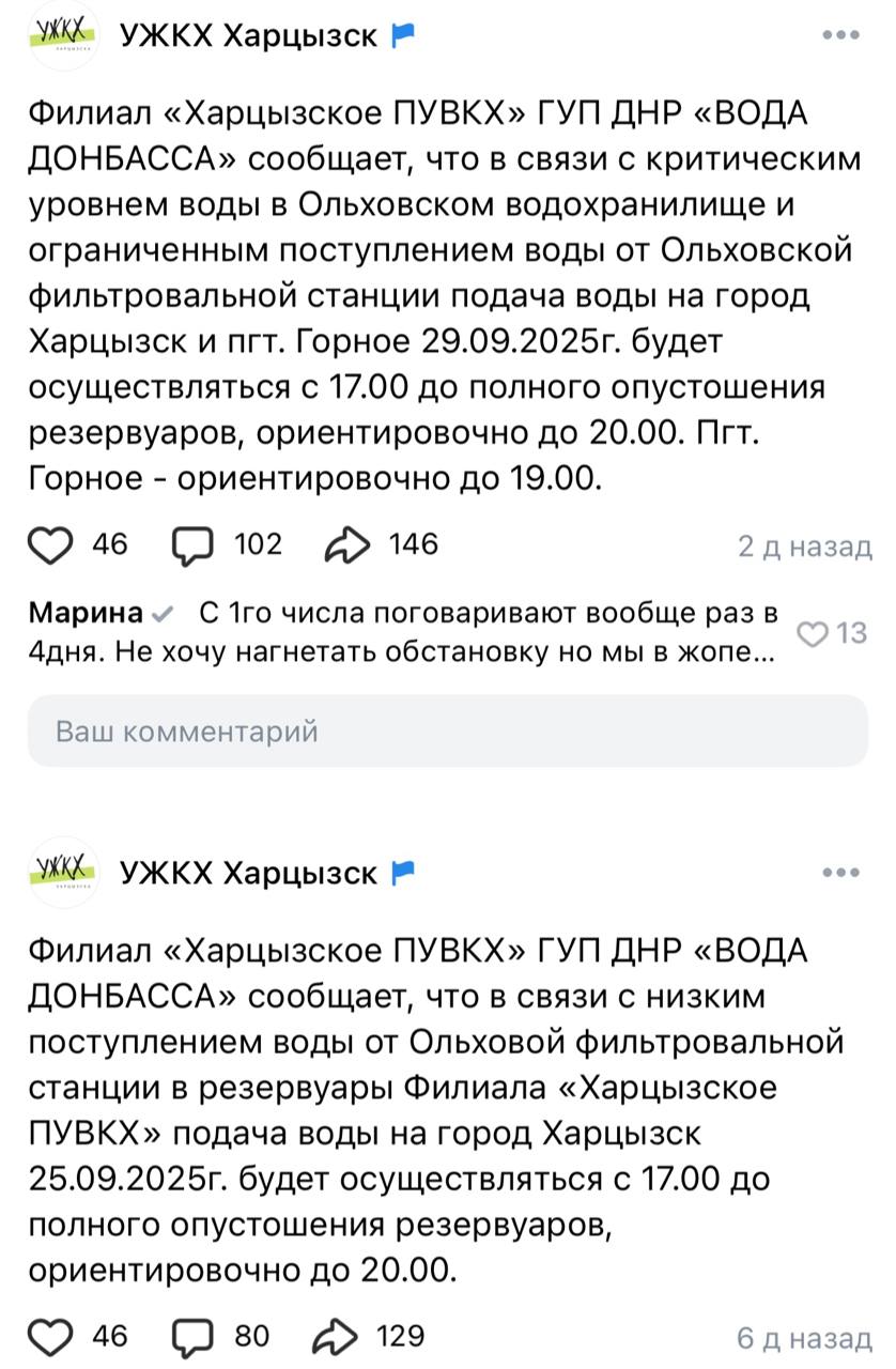 Еще в мае местные СМИ предупреждали, что из-за обмеления водоемов Харцызск может столкнуться с серьезными проблемами с питьевой водой. Однако тогда оккупационная "власть" проигнорировала предупреждения.