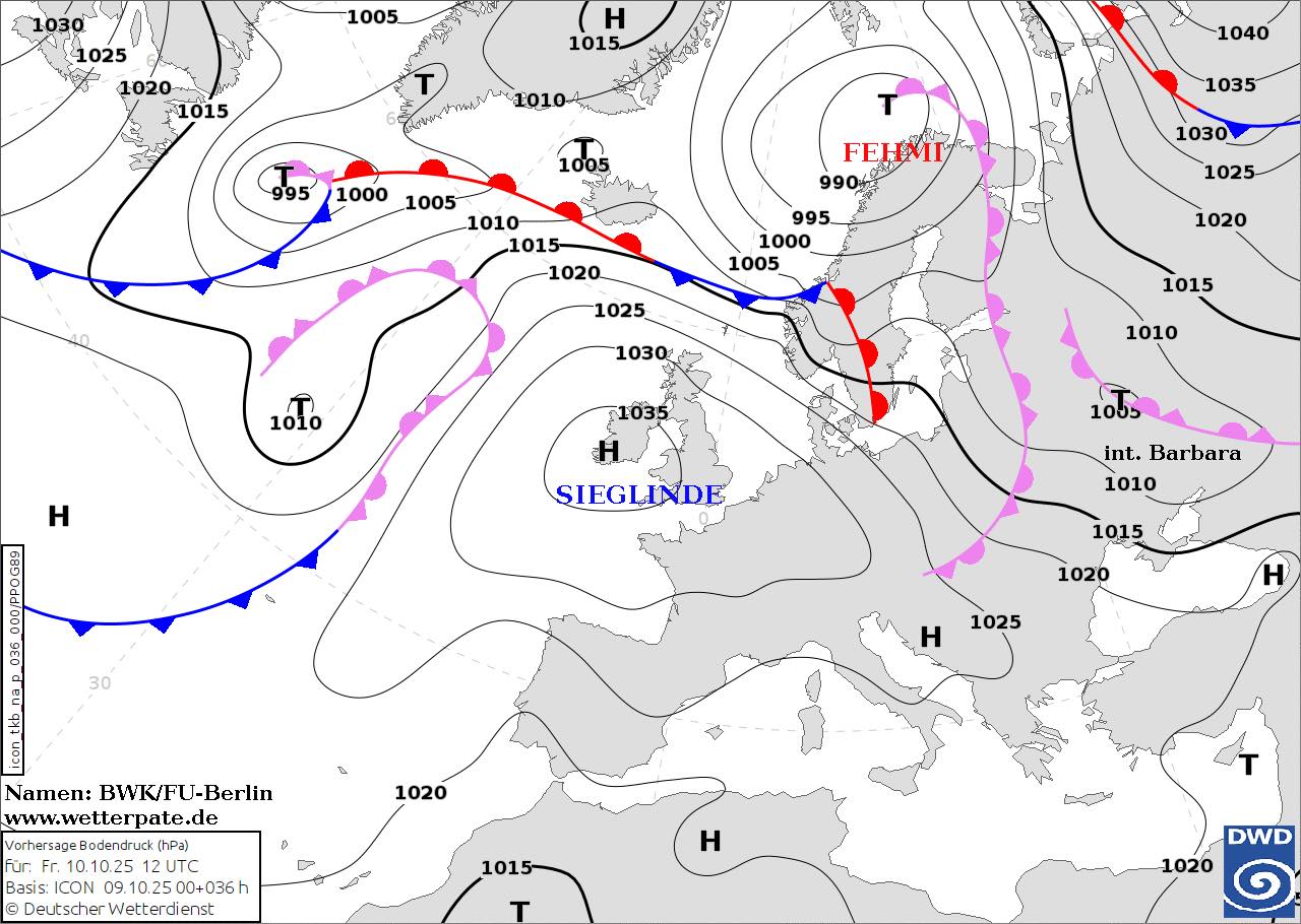 Атмосферные фронты и близость циклона обеспечат дождливую и прохладную погоду почти по всей территории страны. Днем температура воздуха будет колебаться от +9 до +14°С, а на востоке ожидается теплее: от +15 до +19°С.