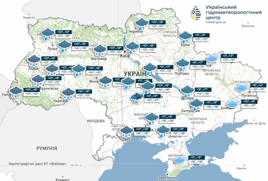 Украину в конце недели ждет настоящая осенняя непогода. Согласно данным Укргидрометцентра, в пятницу дожди охватят почти все регионы страны от Закарпатья до Луганщины. Погода будет хмурой, с низким небом и порывистым ветром. Из-за высокой влажности воздух будет ощущаться прохладнее, особенно утром и вечером.
