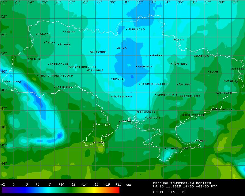 С пятницы по субботу температура немного повысится до +10…14°C, а в воскресенье, 16 ноября, ожидается заметное похолодание до +4…9°C, при этом на юге страны сохранится более теплая погода.