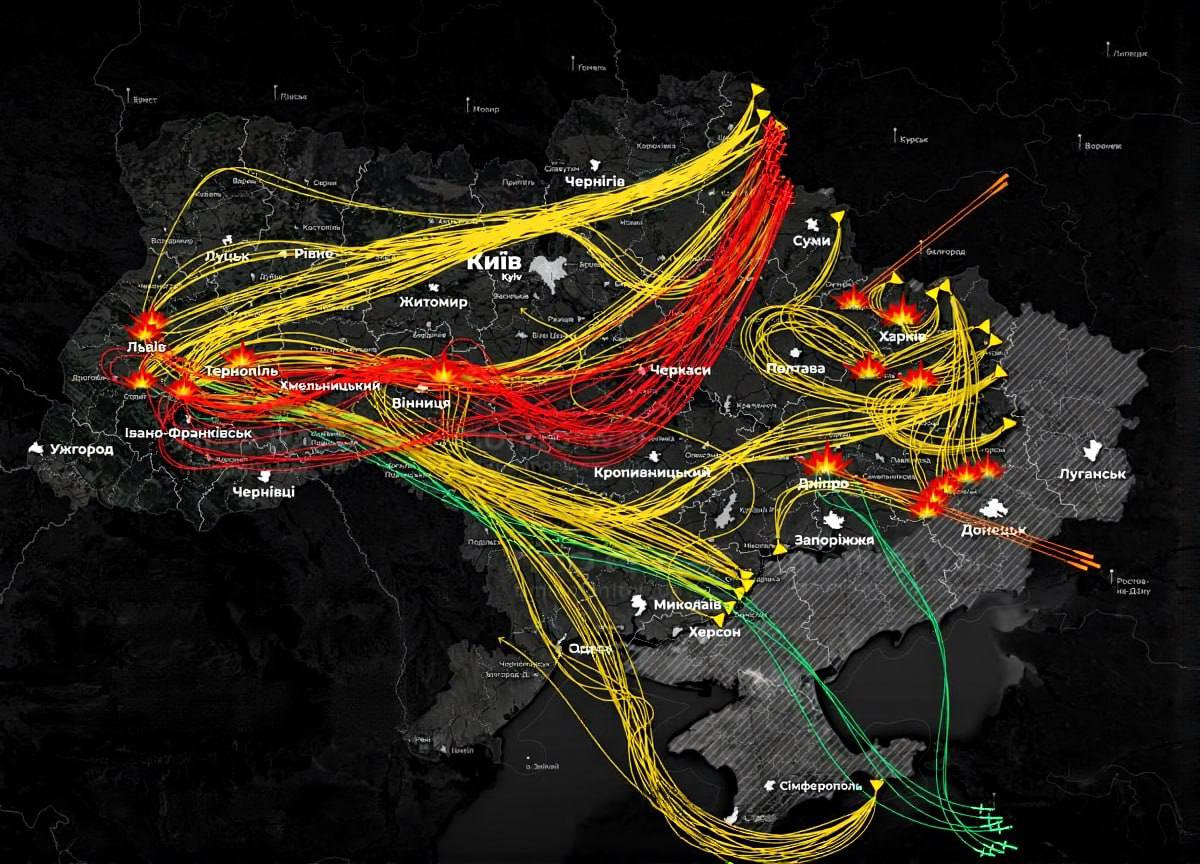 К сожалению, зафиксировано попадание 7 ракет и 34 ударных дронов в 14 локациях и падение сбитых дронов в 6 локациях. Под воздушный удар попали главным образом западные области Украины.