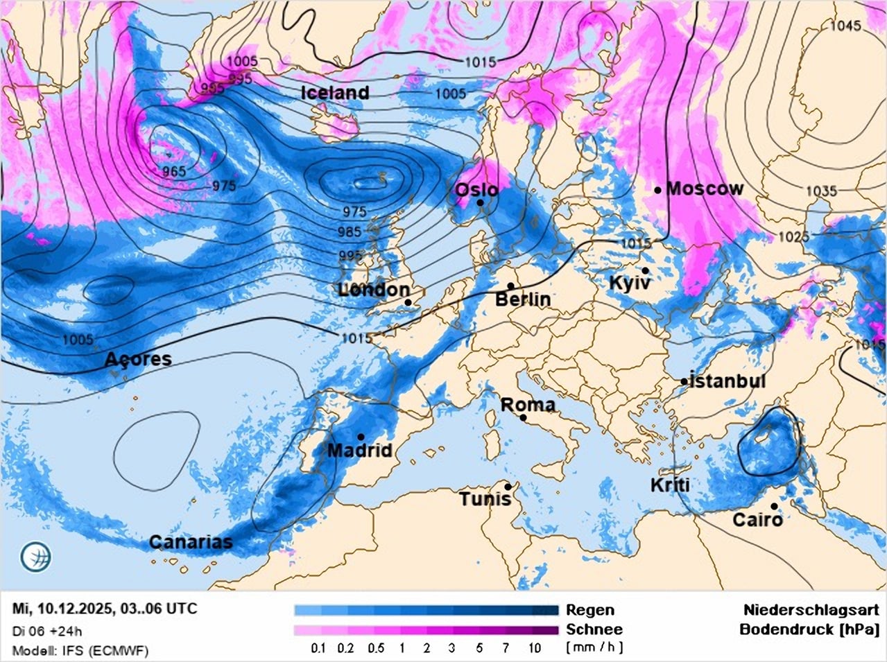 По данным сайта Wisemeteo, в декабре 2025 года в Украине дождей будет больше, чем снега. Сильные заморозки не прогнозируют. В Киеве в середине и в конце месяца ожидают периодические осадки. Может быть также дождь в столице и на Новый год. Прогнозируемая температура воздуха – около +4 градуса. Во Львове в декабре погода будет в основном теплой. В Харькове ожидают в целом теплую погоду, но с осадками. В Одессе тоже прогнозируют достаточно теплую погоду, а вот в Днепре возможны заморозки, особенно ночью.