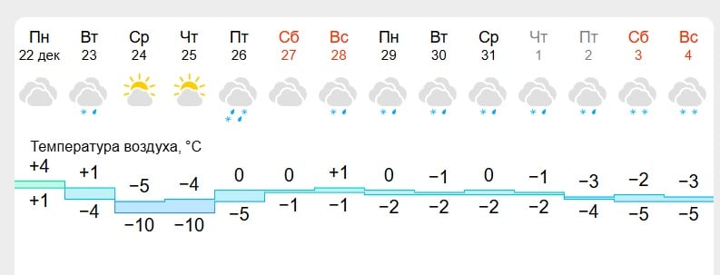 Согласно климатическим нормам и предварительным оценкам Украинского гидрометеорологического центра, конец декабря и начало января в Украине пройдут в пределах сезонных значений: умеренные морозы, периодические осадки и чередование пасмурных и ясных дней.