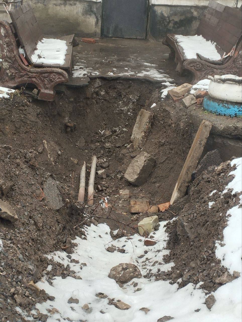Фотографии, опубликованные журналистом Денисом Казанским, показывают двор, превращенный в траншею: разрытая земля, оголенные коммуникации, провалы у подъездов.