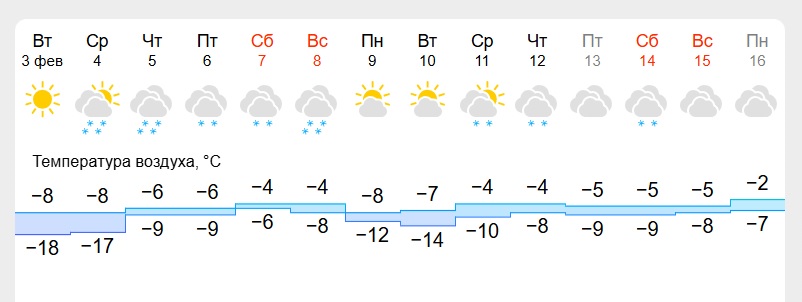 Ночью -19…-17°, днем около -10°. Метеозависимым стоит быть внимательными: смена погоды уже чувствуется.