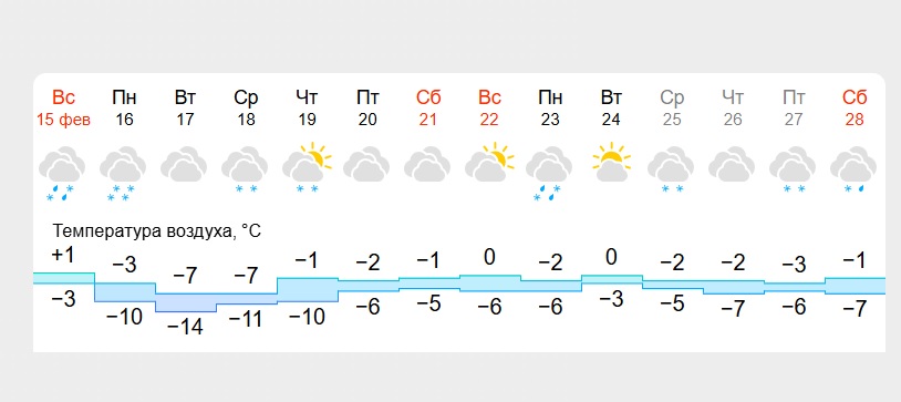 Восток: от +2 до −4 °C, температурный разброс, вероятны осадки.