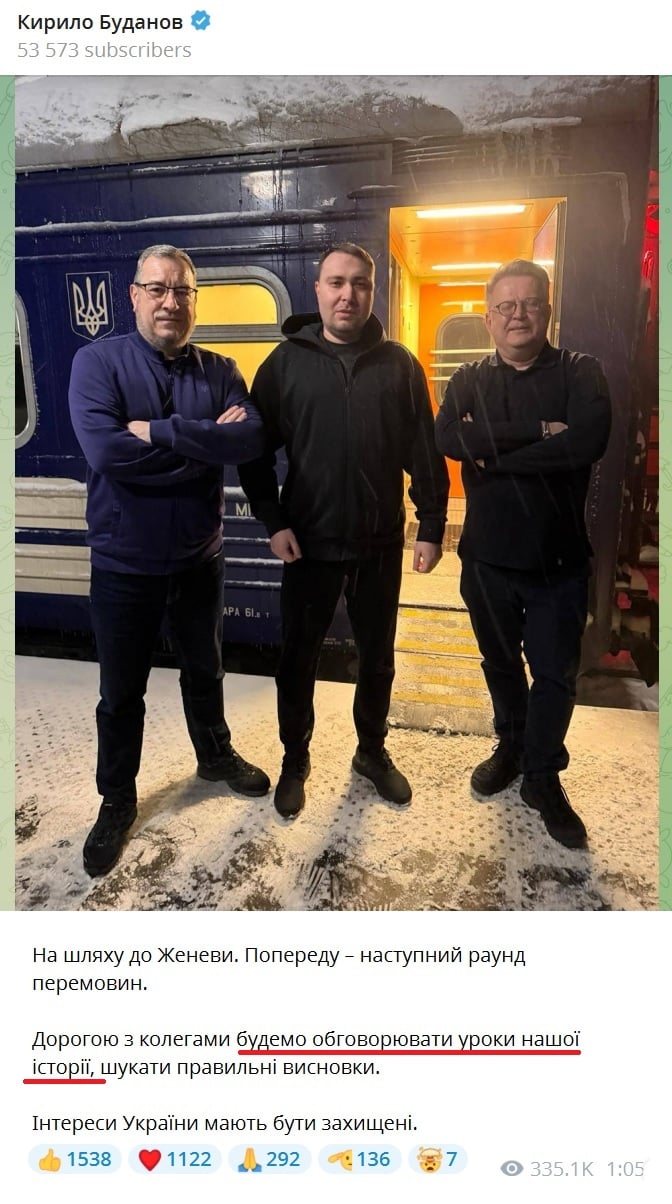"По дороге с коллегами будем обсуждать уроки нашей истории, искать правильные выводы", — с скарказмом написал Буданов.