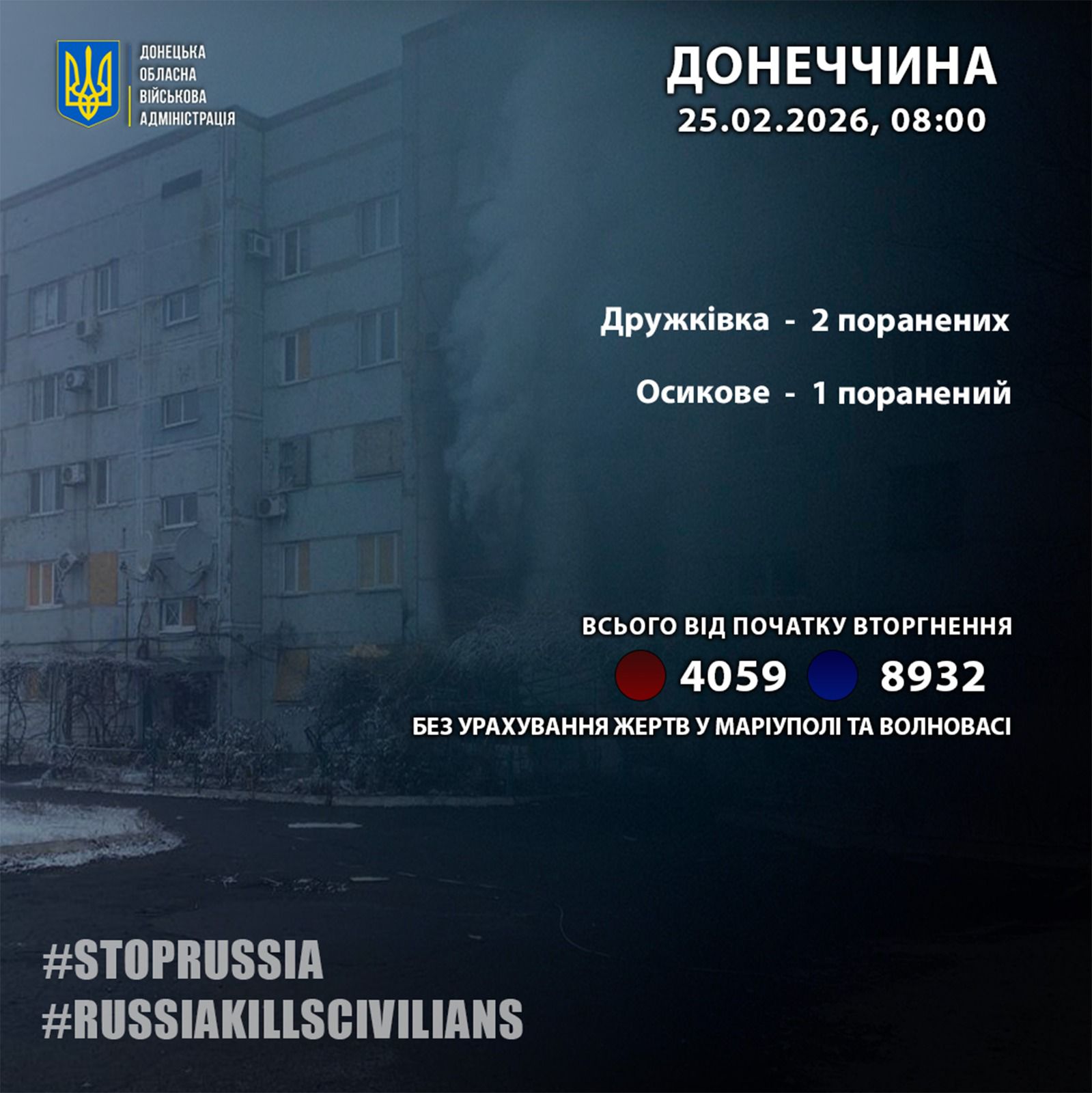 Как сообщил глава Донецкой ОВА, 24 февраля российские оккупанты ранили 3 жителей Донетчины.
