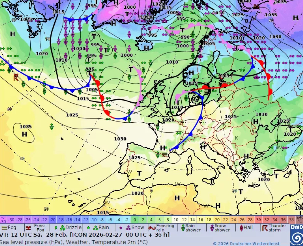 Ночью и утром местами возможен слабый туман. На дорогах сохраняется гололедица, за исключением южной части и крайнего запада страны.