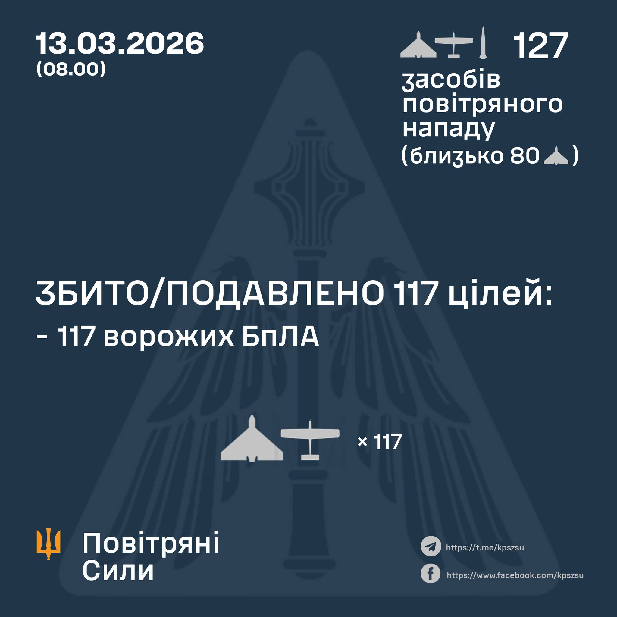 ВС ВСУ удалось сбить или подавить 117 дронов.