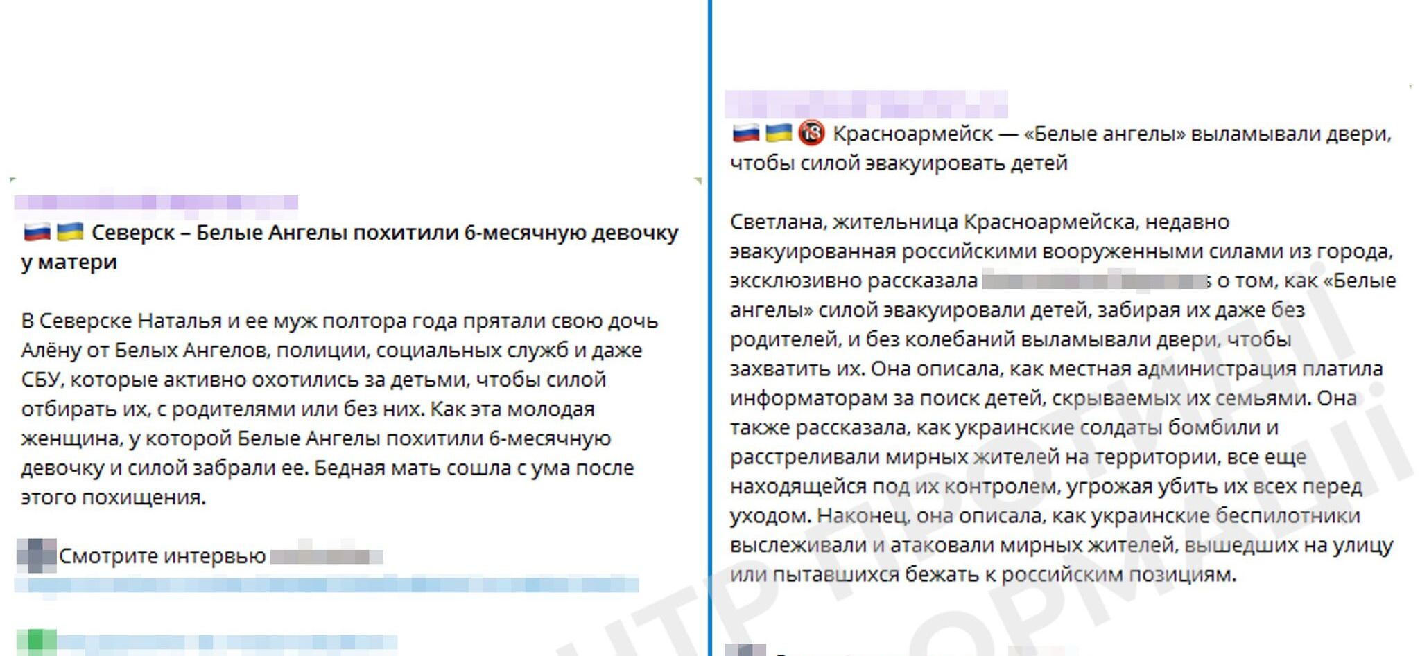 В частности, утверждается, что украинские правоохранители в прифронтовых районах якобы специально выслеживают родителей, а потом похищают детей и вывозят их в неизвестном направлении. Утверждается, что правоохранители якобы похитили 6-месячную девочку, после чего ее мать "сошла с ума". Кроме того, кремлевские пропагандисты снова заявили, что украинские бойцы в своем тылу якобы расстреливают мирных жителей.