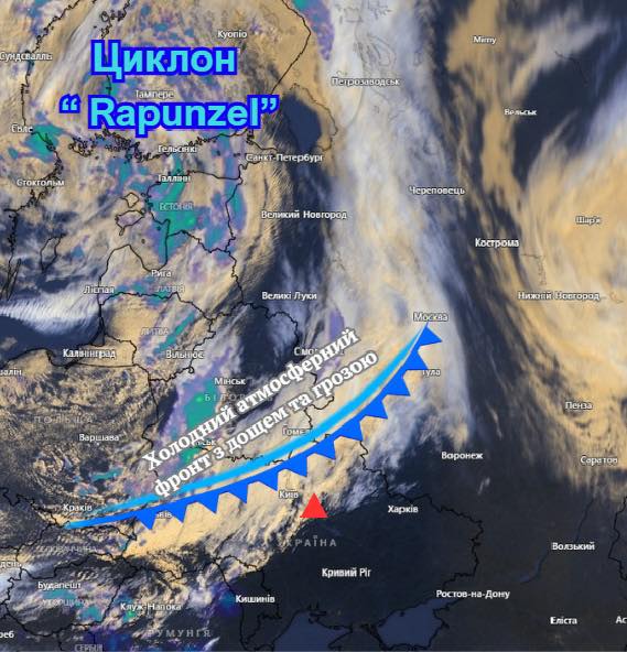 В Украину уже начала заходить холодная воздушная масса. Циклон "Рапунцель" (RAPUNZEL) быстро надвигается с Балтики, меняя погоду по всей стране.