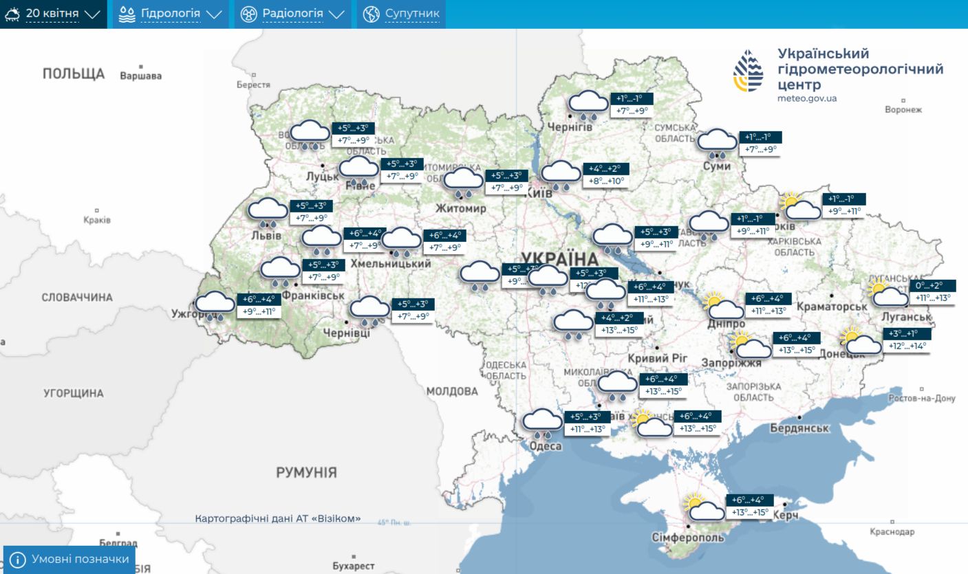 Волна холода и сильные дожди: какая погода ждет Украину 20 апреля