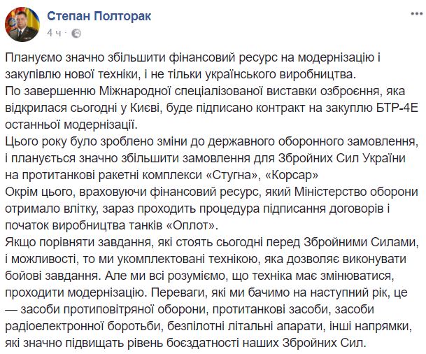 Что планируется к закупке, рассказал министр обороны Украины Степан Полторак, передает "Диалог.ua".