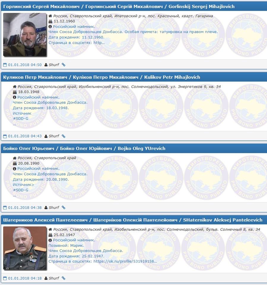 База сайта "Миротворец" пополнилась российскими борцами за "русский мир" в Украине.