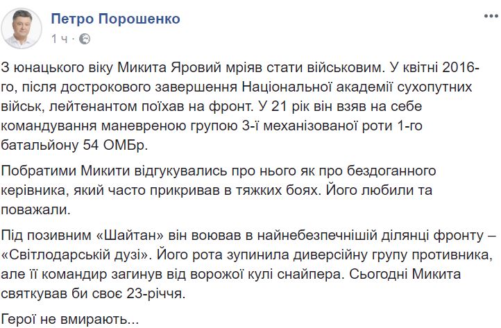 “Сегодня Никита праздновал бы свое 23-летие”, - Порошенко напомнил о легендарном лейтенанте ВСУ “Шайтане”, погибшем за мирную Украину