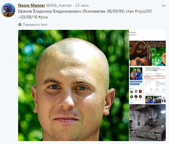 В Сети опознали наемника гибридной армии РФ Владимира Ефанова, ликидированного на Донбассе 3 августа.