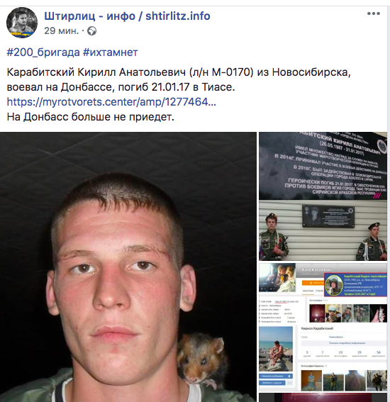 В Сирии ликвидирован еще один наемник гибридной армии РФ, орудовавший ранее на Донбассе. Речь о Кирилле Карабитском.