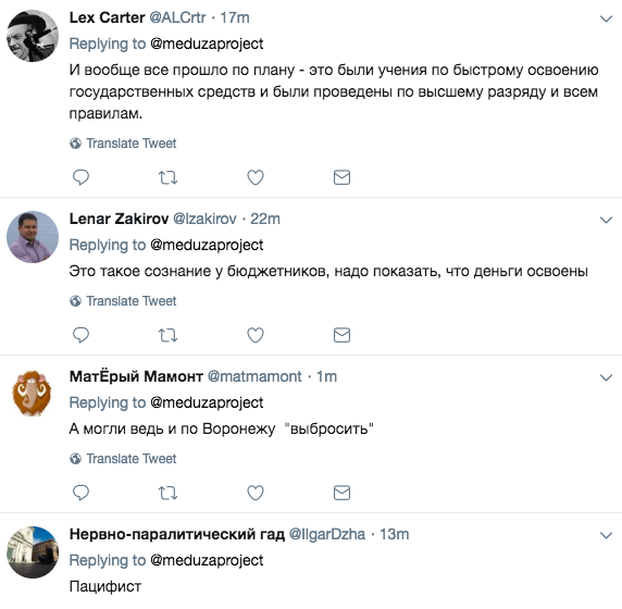 "Вполне российская новость. Пока одни лежат в больничных коридорах из-за отсутствия мест в палатах, другие выбрасывают в болото боеприпасов на 1,3 миллиона рублей", - пожаловался другой пользователь Сети. Многие посмеялись над сообщением.